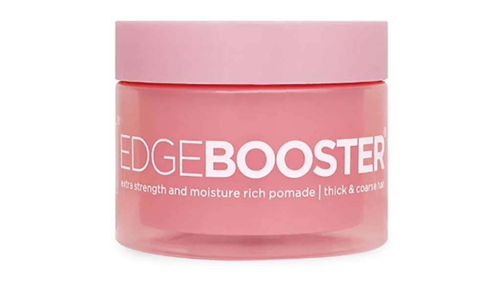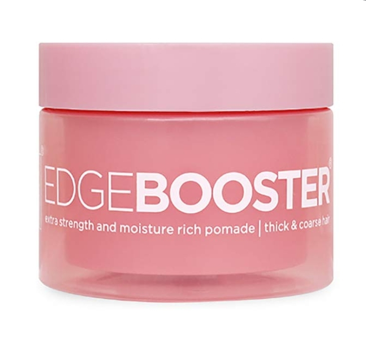 This is a stronghold edge control pomade which aids in relaxing and holding edges steadily. It is different from the Edge Booster Gel which is for general use. It can be applied to damp or dry hair and it comes in many scents. Eg. Sweet peach scent, lemon candy scent, coconut, etc. It gives extra hold to your edges and each type has a unique smell every girl will love❤.